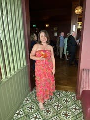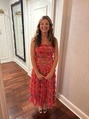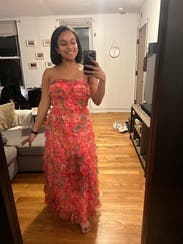 Perfect for a semi formal wedding. A lighter fabric than I realized from the pics which I was happy about for a summer wedding. Structured top that stays up! But may be too big for you if you have small boobs
