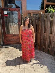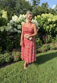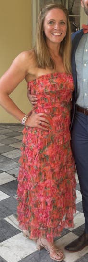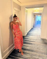 Perfect beachy destination wedding guest dress! It was super light and comfortable all night, even in the heat/humidity. I’m small chested so the top was a bit too large on me, but stayed up fine.