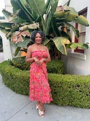 The dress was stunning and honestly more girly than I usually go for but I loved it. The colors were fun and the fit was flattering. I did use tape to keep it up- the bust was surprisingly loose for the size- but with tape it was not a problem. Such a fun dress, I debated keeping it!