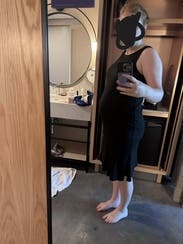 This dress was super comfortable and fit well, I just didn’t like that it looked kind of frumpy. The length of it made it look that way with the bump. I wore a different black RTR maternity dress that hit right above the knees instead which felt more stylish and form fitting.