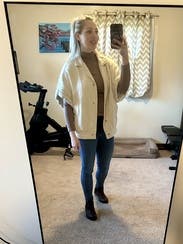 I loved it! A really fun shacket to throw on over a plain tshirt and jeans outfit. It’s oversized but the tailoring is nice so I thought it fit really well. Paired with a tee and the citizens of humanity Libby jeans