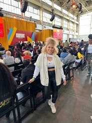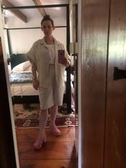 I absolutely love this jacket. I paired it with a more casual look to pull in the colors of my sneakers and added a pin to jazz it up. And I could not be happier in the cut, color, fabric, and depth of this jacket. As others mentioned, it is thicker so plan to wear this in 50ish degree weather not 65+