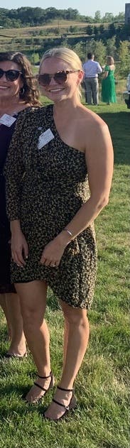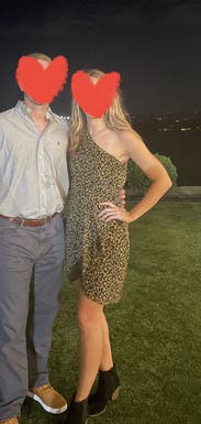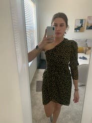 I wore this dress to a rehearsal dinner in the fall in California. The one shoulder was cute and what I loved about it is that the slit didn't open up to wide when I was moving around.