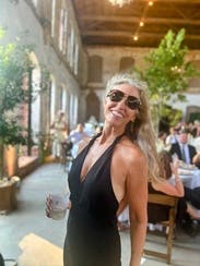 Wore this to a friend’s black tie optional wedding in the summer. It’s light and breathable but still looks *expensive*. Super comfortable to sit and dance in, but would recommend some fashion tape to secure the top if you’re small chested like me.