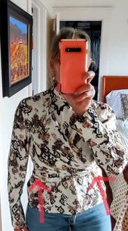 I loved this top so much from the front. I didn’t love from the back. Ended up tying it in a loose knot and it looked pretty good. I liked the fabric and how it laid in the front - pretty print too!