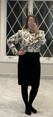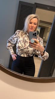 Got so many compliments! This shirt felt somewhat sexy without revealing anything or being too tight. I wore it to work then to a birthday dinner and it was perfect for both. Would buy if it wasn’t so expensive!