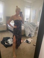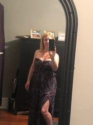 I loved this dress so much. You can’t see in the picture but there are slits on both sides. Only thing is I would probably size up because it is very small at the top. I got a size up as my free second size and so glad I did because I ended up wearing that size because my regular size was so tight on my boobs.
