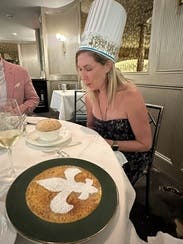 Like others, I tucked away the neck strap. I thought it looked better this way. The fabric was kind of itchy. I wore this to a girl dinner.