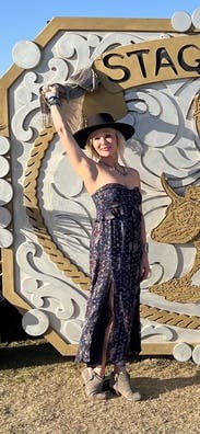 I wore this dress to Stagecoach. I agree with other reviews, the straps are impossible. I wrapped the straps around my chest and wore it like a strapless dress which works if you have a very small chest. Fun to dress up.