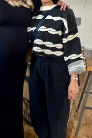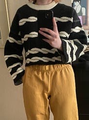 Not a great pic of the sweater but I did love this one. It’s really thick and stiff but it worked and it was warm. It is cropped but totally great with high waisted pants. Loved the rope pattern