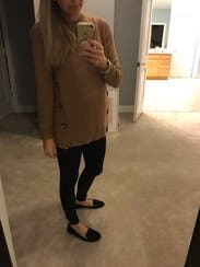 This was a cute sweater, and flattering on my 6 month bump, but the shoulders and arm pit area felt very big. I felt like it would annoy me all day, so I never ending up wearing it.