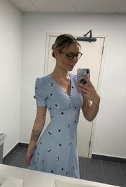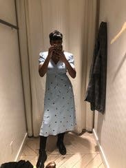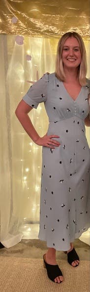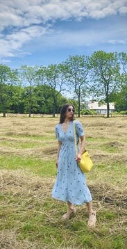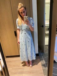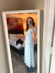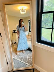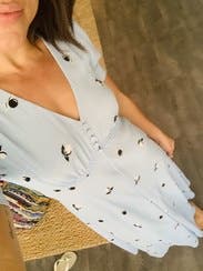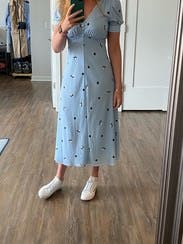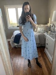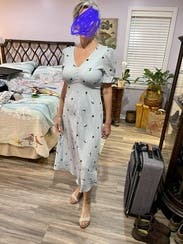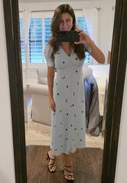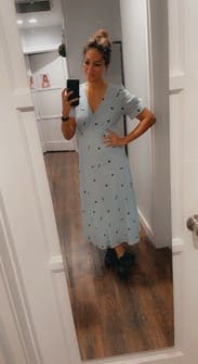 god i love this dress i might never send it back. it fits PERFECTLY and is SO flattering. it's very lightweight and the fabric doesn't wrinkle which makes it so easy to travel with!!! i wore it to a nice dinner date, an easter brunch, an engagement party, and tbh just walking around the house. the only thing is that it's a lil low-cut -- i couldn't wear a bra, had to do stickies.