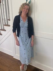 Wore this on my first day back to school! The color is beautiful and the fit is so flattering. Got lots of comments on this one. You will not regret renting this dress!