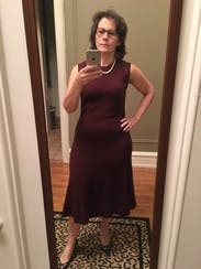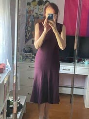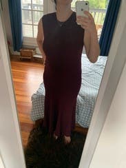 I loved everything about this dress. Deep burgundy color, soft fabric, generous cut. It is thick and not clingy, the skirt drapes nicely and the top accentuates the curves. I am really tempted to keep it.