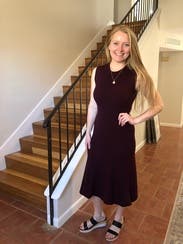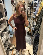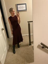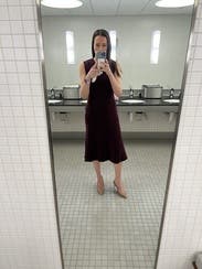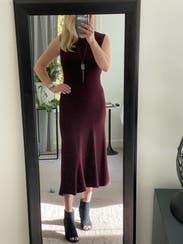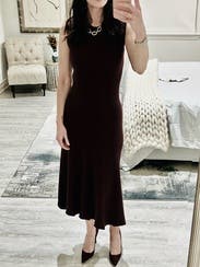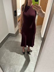 I love so much about this dress! The dress is attractive through and through. Our days right now are chilly in the mornings and warm during the day and this was perfect for a desert fall day. I received so many compliments from the color to the cut. I considered keeping it longer and is on my rent again list.