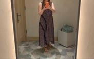 Perfect for 5 months pregnant- forgiving and flattering, good with or without a belt! Will rent again for sure.