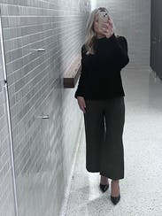 I wore this with jeans on the weekend and grey work pants during the week - great fit!