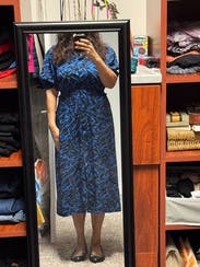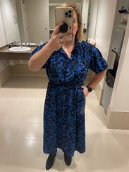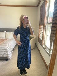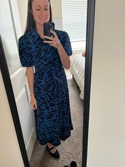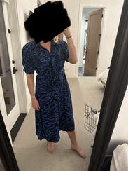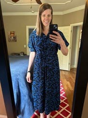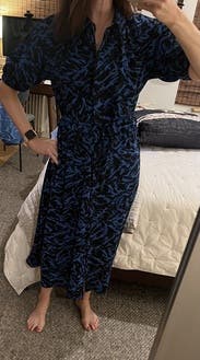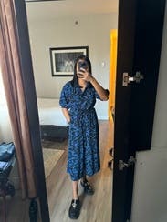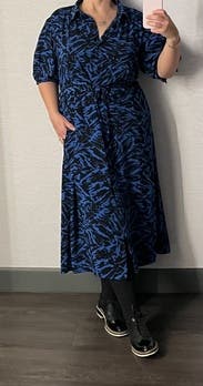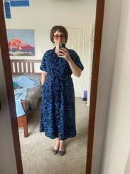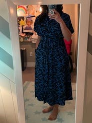 This dress is very comfortable and forgiving. Kind of giving church lady vibes, but I’m into it. It’s definitely roomy, you might consider sizing down.