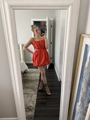 I loved this dress so much! I really wanted to try the bubble hem trend, and this was the perfect way to do it. Straps can be adjusted! I wore this to a (casual) gala, and I got lots of compliments. 10 out of 10 for sure…I wish I was keeping it to wear for the 4th of July!