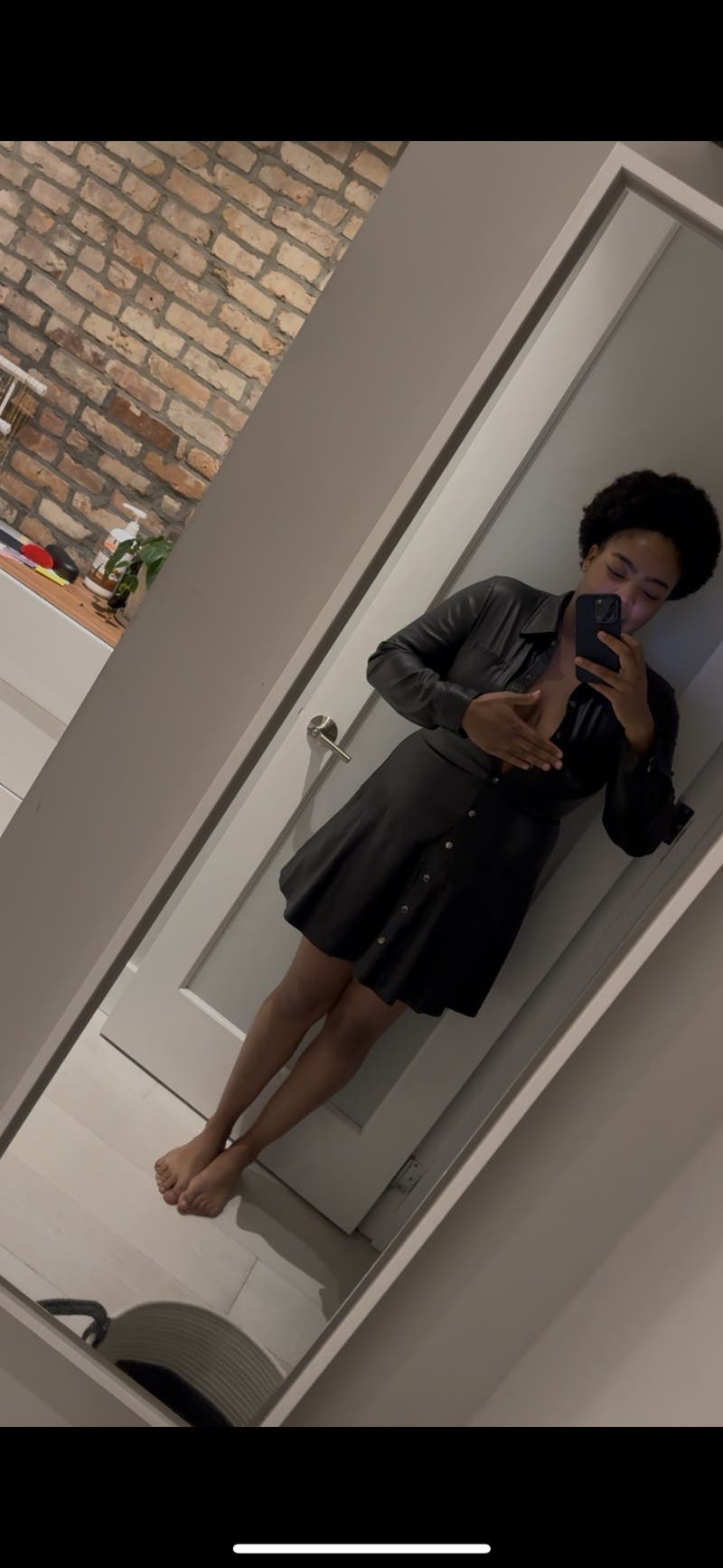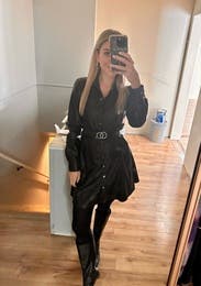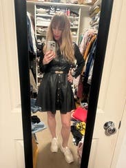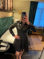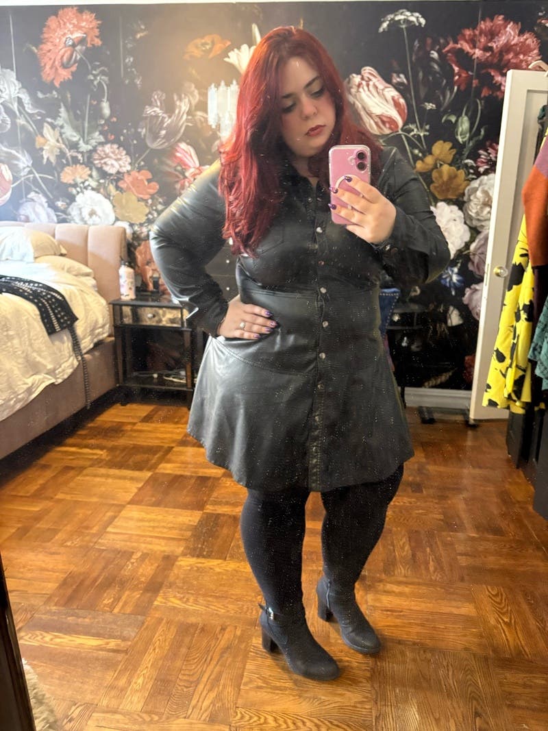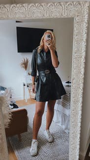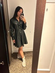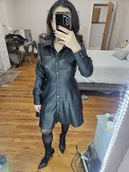 This dress is so fun. I honestly was about to buy it, but the price was a little bit too high since it's not real leather, I also thought that I could probably find another leather dress like this for cheaper. Aside from that, though, I was literally obsessed with the dress. It stole a piece of my heart. I also got so many compliments on it.