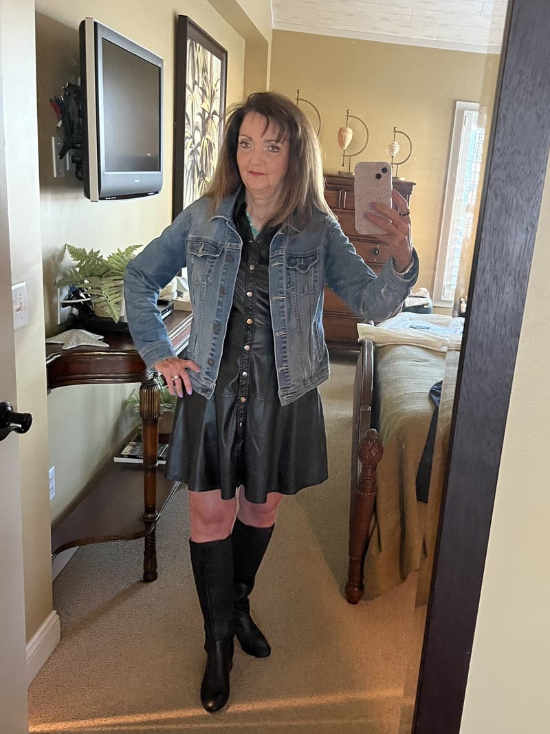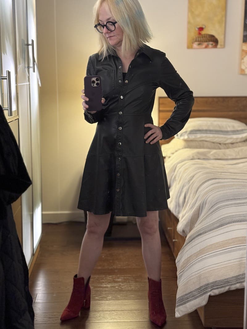 I loved this LBD! The leather gives it a fabulous look and feel. It’s not too heavy so it wasn’t hot. Can be work to work, dinner out with friends, or casually on the weekend. I’m tempted to buy!