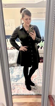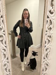 Great for petites looking for fit-and-flare styles. I wore this out for date night with my husband. It was easy to style with different colored boots, and sometimes, I added a belt to give it a different feel.