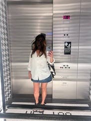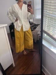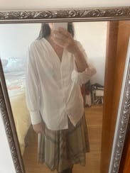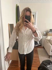 I've loved seeing pairings of white button-ups with straight-cut jeans. I sized up to medium, which gave me the perfect loose fit. It felt a little formal for every day but I still had fun wearing it.