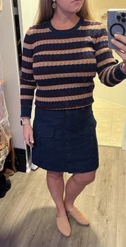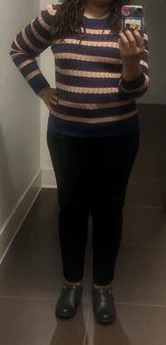 I rented this top for work…and it worked out well! Comfortable and the colors were good for fall…thicker knit with stretch is flattering.