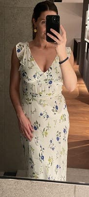 Something about how this was constructed makes the dress jet out right at the hips making me look like I have wides hips and thighs. Overall the dress is beautiful and perfect for a summer evening if you can get past thr wideness.