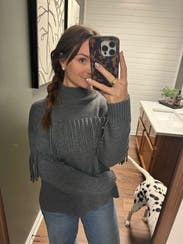 This sweater and it's fringe was a little elevated look. I am always looking out for a cute sweater to wear with jeans in the colder weather. The fringe did not add much bulk and I felt trim and chic.