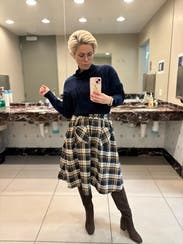 I ordered up a size or two for a slightly oversized look - I’m wearing a medium here and would normally wear an extra small or small - this is such a fun look for fall! Great quality. Super soft and comfortable. Definitely recommend!