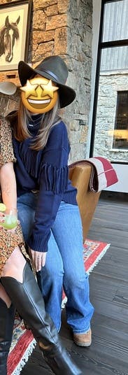 Wore it on its own tucked into jeans on a rainy day. Love the fringe. Chic cowboy city vibe. Very cozy!