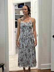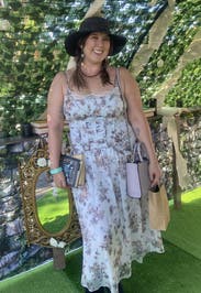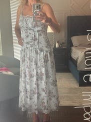 The perfect breezy feminine dress! If you love a light, floaty fabric this is definitely the dress for you. This ran just slightly big in the waist on me, so if you want a more fitted look I would suggest sizing down. If you like your dress a little roomier (especially when the weather gets hot) rent your usual size. Straps are adjustable for both layers of the top so it can be tailored just for you. I'm 5'5" and wearing a low kitten heel. if you're shorter I'd recommend also wearing a heel or a platform sandal.
