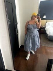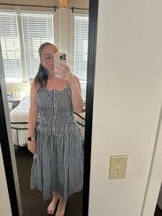 This dress is a great go-to. Love that it has pockets! It’s stretchy so you could size down.