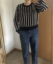 This sweater is so cute, seems like a simple sweater but the white braided detail is really special. I got nonstop compliments every time I wore it. The fit was great too. It's shorter is length but not a crop, so it was flattering and a contemporary fit.