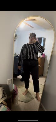 Got compliments, great work sweater, I wore with wide leg pants.