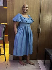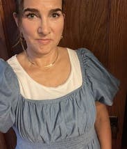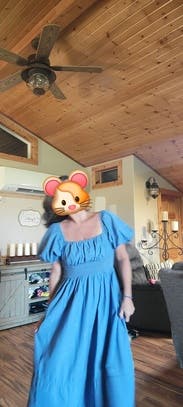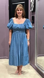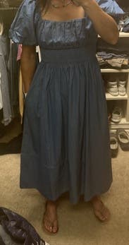 Wonderful choice for petite midsize ladies! I’ve never liked maxi dresses on myself because they tend to graze the floor, but this one barely hit the tops of my ankles. Love the a line fit and open back also!