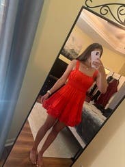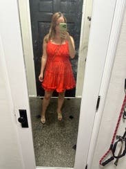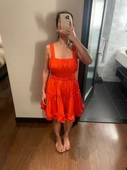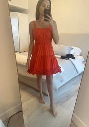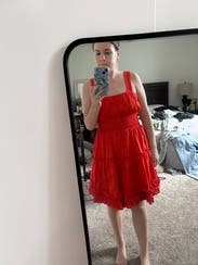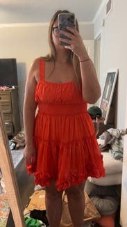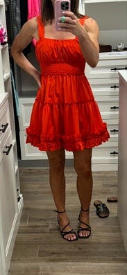 Perfect summer dress for my graduation party. The ruffles are fun and flirty. The shoulder straps were a little big at times, but it still worked fine. I’m 5’9” and it wasn’t too short for me. It definitely had to be steamed when I got it from RTR though, but it was totally worth it. Love this dress!