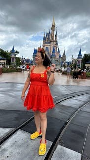 Fun color. Nice fabric. A little too much volume in the bust. My husband said I look like a character from Rio but I thought it was fun for day drinks with the girls.
