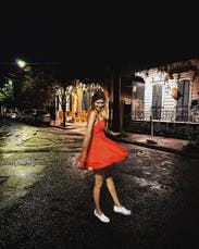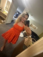 Wore this dress for a girls night out. The color is gorgeous! So bright and fun. Fits great. Only down side is it’s a little bit heavy but definitely a cute rental.
