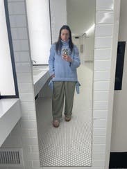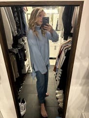 I loved the color of this sweater for post-Christmas winter and enjoyed how chunky it was. However, the bows/straps on the sides were a little odd; since the fabric is so thick, the bows looked a bit off, and so did the straps just hanging. It was cozy and I wore it a few times, but it's not my favorite.