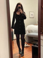 VERY high quality dress. It's definitely thick and will keep you warm, so don't worry about that! I loved the length. Not too short & not too long.