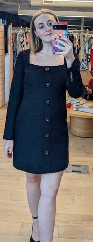 Beautiful tweed dress, structured but very flattering. I possibly could have sized down, the shoulders were a bit broad.