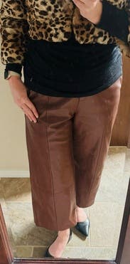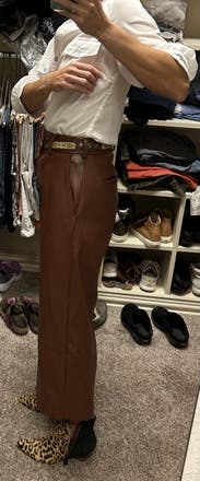 These pants look and feel high end. They’re super trendy, but I was able to make them work appropriate with a mock turtleneck and a blazer. I’m usually a size 12 in pants but the size 12 in these was a little tight in my waist/ belly, which is where I carry my weight. They weren’t uncomfortable … not just particularly flattering. But I liked the look enough to wear it for a day. Will probably rent again in a size up.