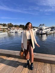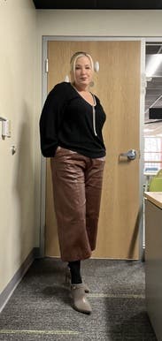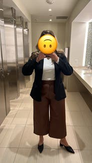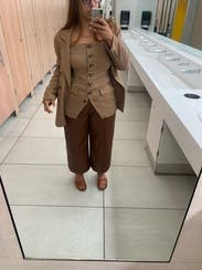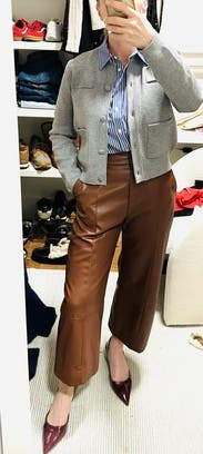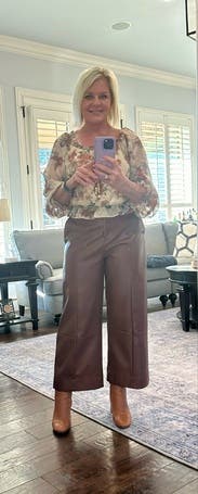 Top and pants are from Rent the Runway, added a white Shein shirt and cheetah shoes. I do feel trendy, but something about it feels off for my usual style. It’s a fun look if you’re experimenting with fashion, though!