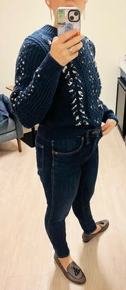 Not itchy and really fun details. Perfect length for high waisted jeans (also RTR - Joe’s)