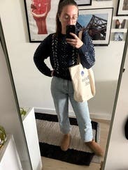 I wore this sweater a few times. I guess it looks a little poofy around the waist in the photo, but I liked wearing it.