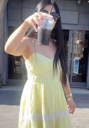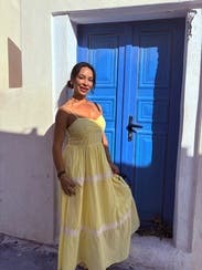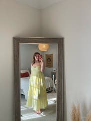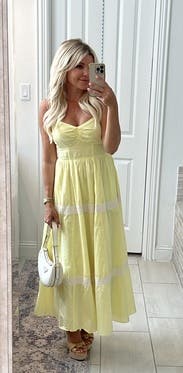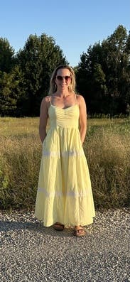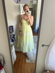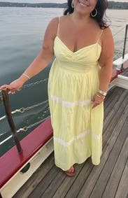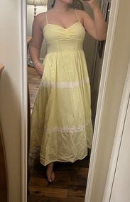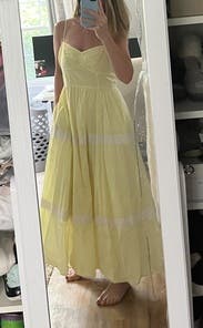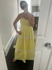 I rented this one and my daughter snagged it for her Gram pics. It’s a gorgeous, flowy dress that looks great when paired with an ocean breeze! Fit nice; adjustable straps. Beautiful bright yellow.