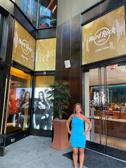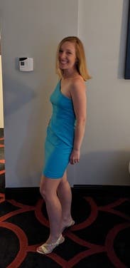 I chose this dress very impulsively, after DAYS of trying to decide on a dress. Also was not aware of the party theme until actually arriving (I had a feeling 😉). It framed my body well and is a lovely color, especially paired with the fushia heels and earrings that I also rented. The only thing that was a little off at first was the top. I wasn't sure if it was due to my midsection, chest, or height. Was not tight, but something was off. It worked though and I'm content.
