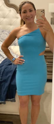 Rented this to wear in Vegas for a friend's birthday. Loved the color!!! It was comfy to wear and fit perfectly - not too short but not too long. Definitely recommend this one!